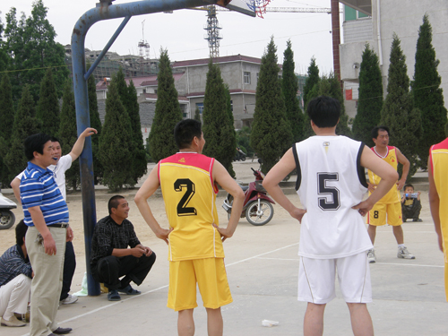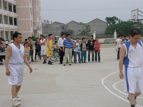 警校联谊保校安,固镇镇中心派出所加强警力确保校园安全,5月12日下午4:40固镇镇中心派出所干警与固镇镇初中教工在固镇初中篮球场举行一场篮球友谊赛。固镇镇镇长郭杰同志亲临赛场观看比赛,固镇中心派出所所长姚光顺同志亲自率队上场参赛,固镇镇中心学校胡申林校长、刘余生校长亲自执哨担任裁判。此项活动既丰富了校园文体活动又亲密了学校师生与公安干警的感情,为打造安全和谐的校园环境奠定基础。精彩的比赛赢来观众阵阵掌声。(图为球赛场景)