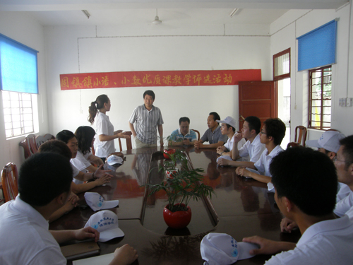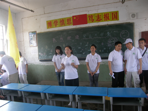 2010年6月30日上午安徽农业大学学生到六安市裕安区固镇镇中心小学开展“三下乡”活动。大学生们冒酷暑深入基层向教师开展问卷调查,走进小学生进行零距离联谊交流。此次活动深受学校师生欢迎。(图为活动场景)