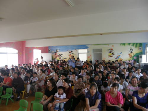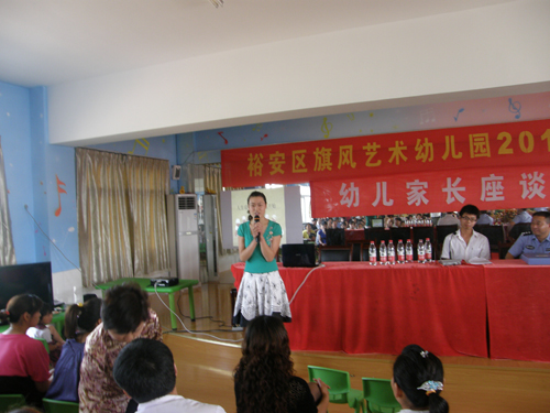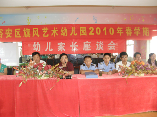 固镇镇旗风艺术幼儿园把校园幼儿教育与学校安全保卫工作高度结合起来。6月7日上午固镇旗风艺术幼儿园艳阳高照、彩旗飘扬,处处呈现节日气氛。8时许学校幼儿家长聚集学校会议室参加校园举办的幼儿家长座谈会,会上镇中心学校校长胡申林同志作学校教育和安全工作总体要求;固镇镇中心派出所谷怀松警官对家长作安全工作报告;镇司法所同志在会上作普法宣传。最后学校安排由幼儿英语教育专家进行幼儿英语教育专题讲座。会议内容丰富安排紧凑,深受幼儿和家长喜爱。(图为会场场景)