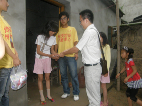7月11日安师大爱心学校助学团队分组赴六名受助学生家中慰问学生,当场捐助资金500元,受助学生感到温暖,纷纷落下感激之泪。